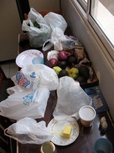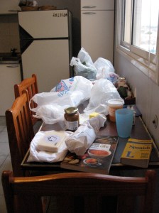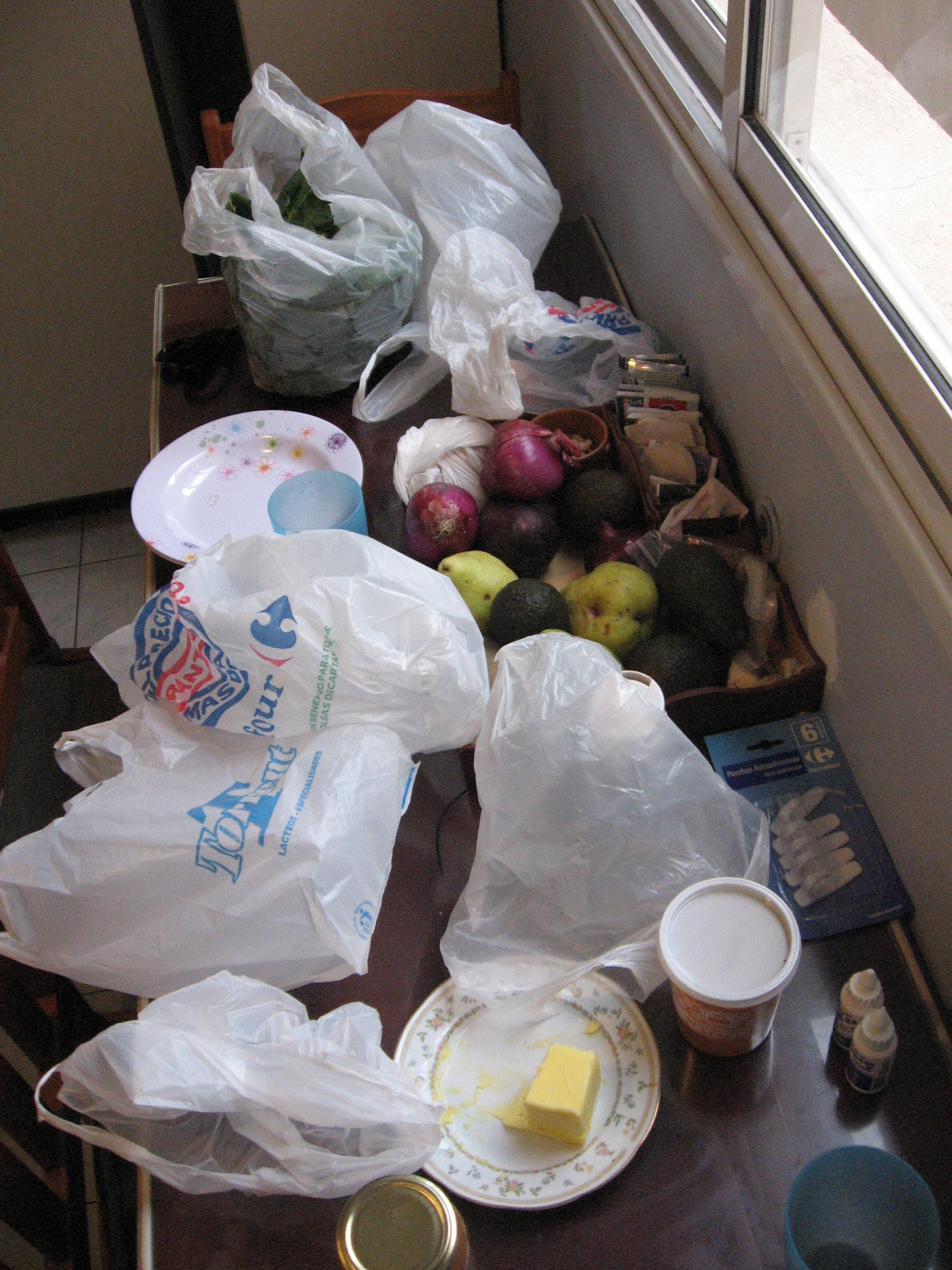 They have become the bane of my existence. It is as if they are a sign of wealth. When I go to the store, no matter which store it is, they send me home with about one bag per item, and these are small bags. I have learned to suggest that they fill them more full; I’ve even had the gall to take things out and repack my own bags. On a typical trip to the ‘target’ style store, I might come home with 8 bags-each containing an average of two items. We have been here for less than two weeks, and our broom closet is bursting with bags. I guess this could be seen as a good thing, since we also throw EVERYTHING in the garbage. I have yet to learn about any alternative disposal for vegetable/food waste. We asked around a bit, and no-one seems to have an idea of what we are talking about. As for the recycling, fortunately there is an informal system of cardboard collectors-they just take it upon themselves to collect what is left on the street, and bring it to the recycling center. According to one fellow, it is a good living. This is, of course, if people don’t just throw their cardboard into the garbage along with everything else.