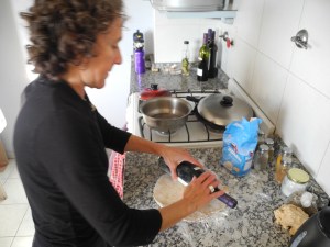 This day turned out to be a comfort food success! In addition to making bagels, I came across a vendor in the Mercado Central that sells bulk, all natural PEANUT BUTTER! It was a double treat-one half bagel with cream cheese, the other half with peanut butter and jelly! Happy kids!